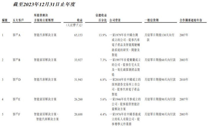 主要客户方面,奥迪威传感器及执行器解决方案已为不同地域及行业超过3000家客户提供服务, 包括许多知名跨国企业。截至最后可行日期,奥迪威与按2024年销售额排名前十的客户平均合作时间均超过11年。