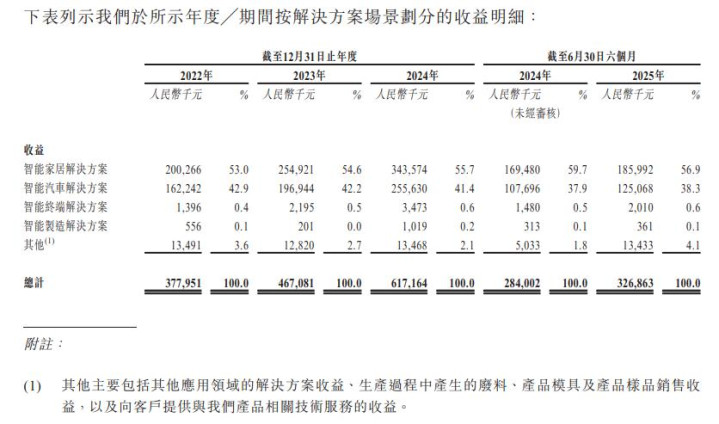 从营收占比上看,202-2024年及2024年1-6月、2025年1-6月智能家居解决方案营收占比为53%、54.6%、55.7%及49.7%、56.9%,为奥迪威第一营收场景。