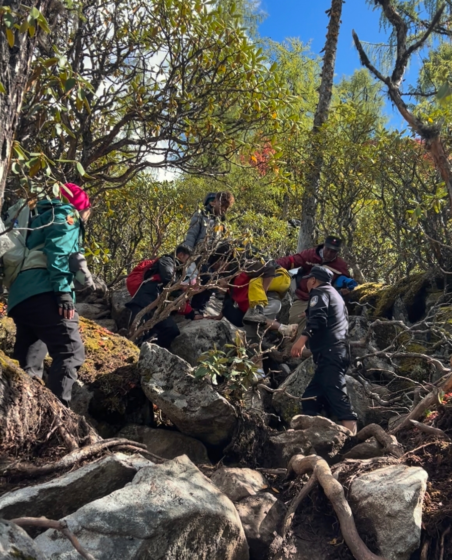 “情况紧急,必须马上求援!”同行的山野繁星俱乐部领队第一时间响应,因所处地域无手机网络信号,领队通过对讲机紧急呼叫同行向导,指示寻求专业救援并报警,为后续救治抢下关键“黄金时间”。